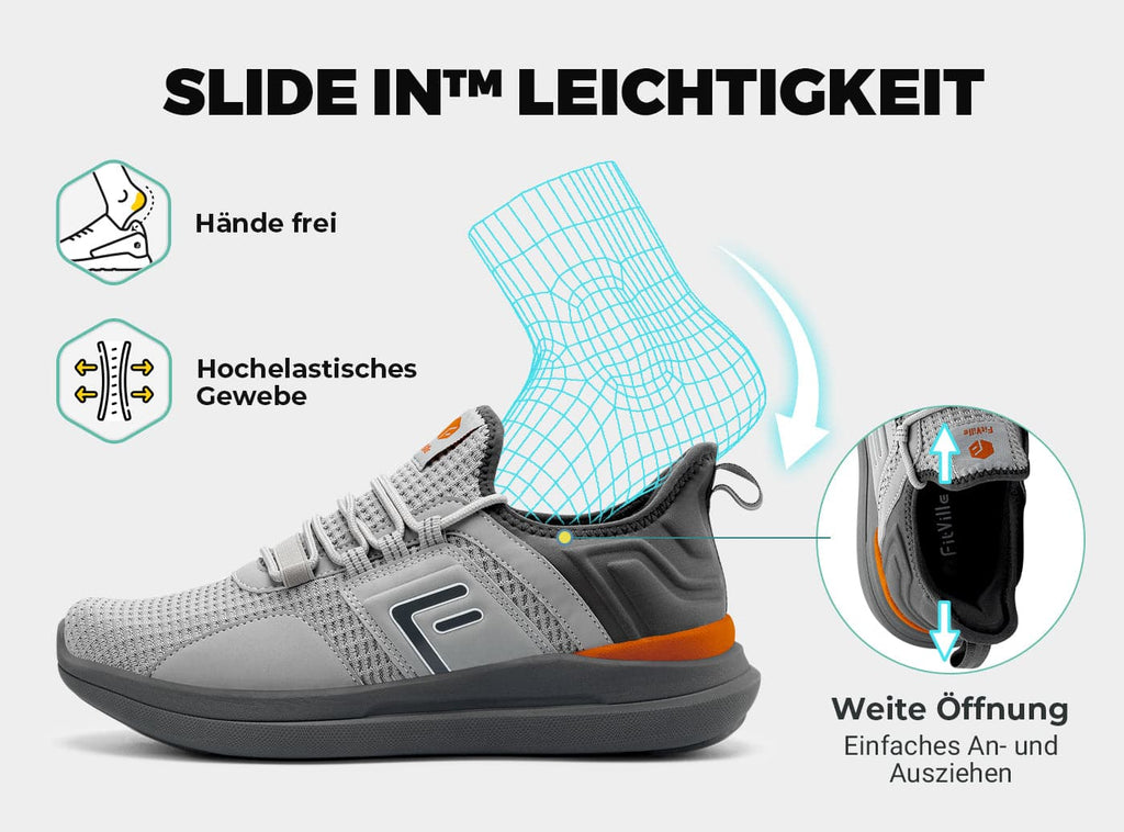 Die FitVille Comfort+™ Technologie bringt Komfort in Bewegung. Diese innovative Technologie passt sich der Kontur Ihrer Füße an, um Ihre Bewegungen zu verbessern.