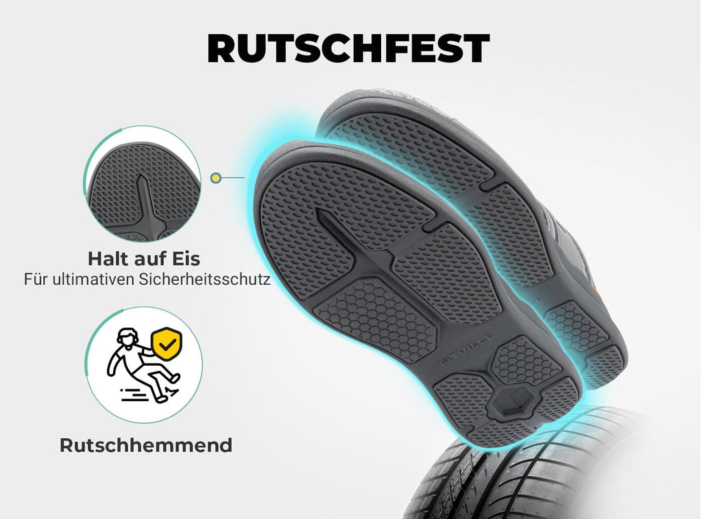 Mit einer dauerhaften, rutschfesten Gummiaußensohle, die so lange mit Ihnen Schritt hält, wie Sie sie brauchen. Die konkav-konvexe rutschfeste Funktion sorgt für mehr Sicherheit.