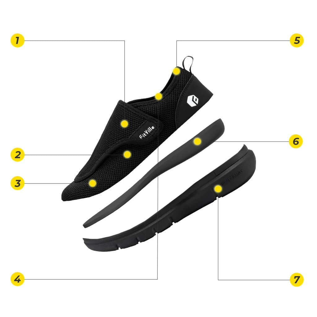 Schlüpfen Sie in wolkenartigen Komfort mit FitVille EasyTop® Diabetikerschuhen, die Weiten bis zu 6E und ein reibungsfreies Design bieten, das empfindliche, geschwollene Füße mit Ödemen verwöhnt. Die extra breite Zehenbox und der hohe Spann sorgen für Platz und Halt, sodass sich deine Füße frei fühlen.