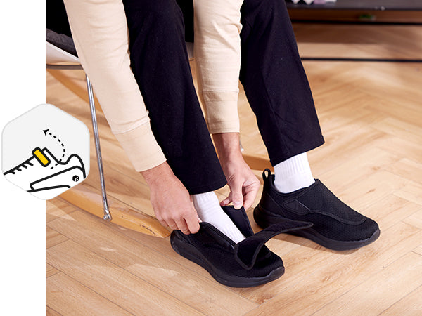Die verstellbaren Klettverschlüsse sind perfekt für diejenigen, die ein problemloses Anziehen der Schuhe bevorzugen. Außerdem lassen sich die Klettverschlüsse perfekt auf die gewünschte Passform einstellen, um die durch Schwellungen verursachten Schmerzen zu minimieren.