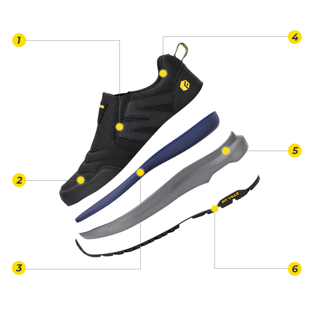 Dank der ErgoFit™-Technologie sind die FitVille-Schuhe ergonomisch geformt und bieten Ihnen ein fantastisches Tragegefühl. Die federnde Dämpfung minimiert den Druck und maximiert die Stabilität.