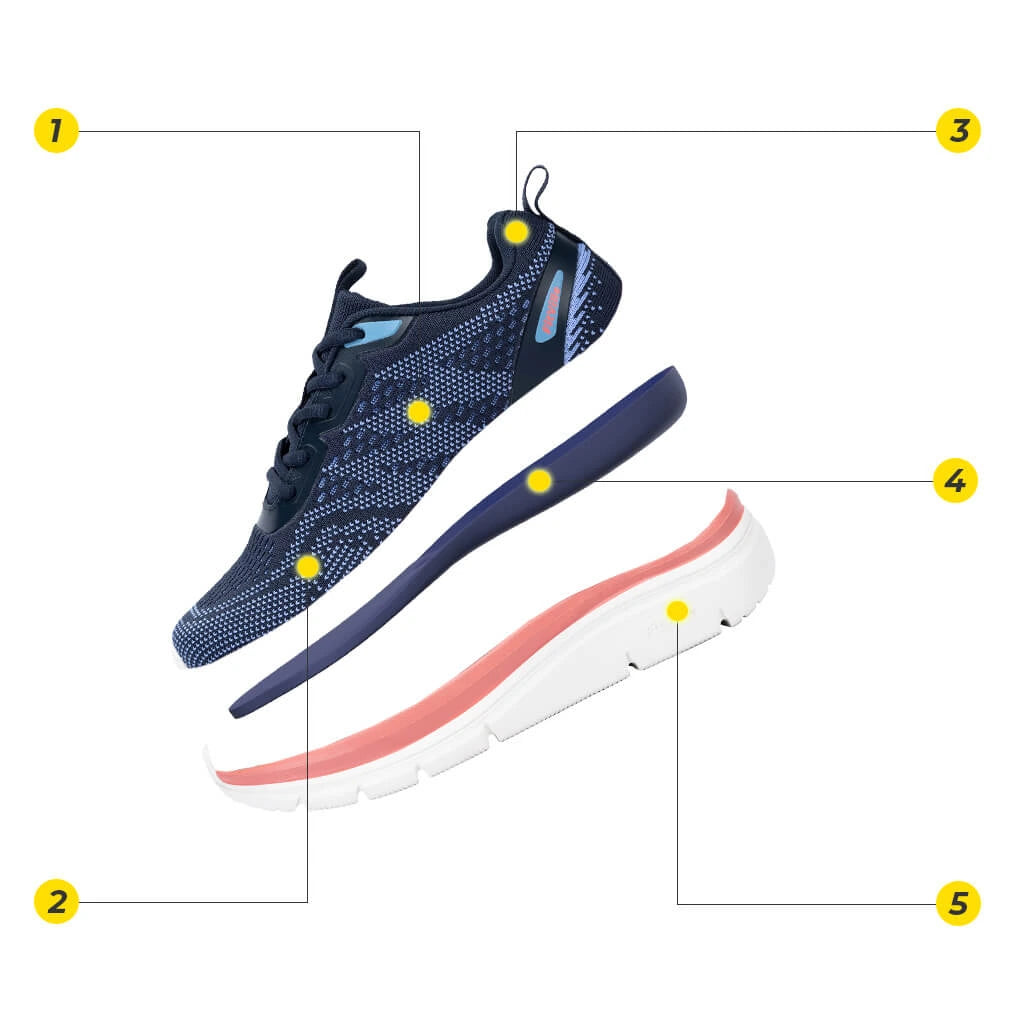 Entdecken Sie FitVilles Damen-Cloud Wanderer V8, jetzt erhältlich in Jet Black, Navy Blue mit Dark Pink und Black mit French Violet – die perfekte Kombination aus Stil und Funktionalität. Bei diesen Schönheiten dreht sich alles um Ihren Komfort und Ihr Wohlbefinden. Spitzentechnologie sorgt dafür, dass jeder Schritt genauso erstaunlich ist, wie er aussieht. Genießen Sie eine bequeme Passform und erhöhte Knöchelunterstützung, die Ihr Selbstvertrauen bei jedem Schritt stärkt. Darüber hinaus garantieren das hochelastische Obermaterial aus Strick und die extradicke 5-cm-Schaumsohle Belastbarkeit, Haltbarkeit und zeitlosen Stil. Wohin auch immer Ihr Tag Sie führt, sei es rund ums Haus, auf einem Wanderweg oder an einem entspannten Tag im Büro, werten Sie Ihre täglichen Spaziergänge mit dem Damen-Cloud Wanderer V8 auf.