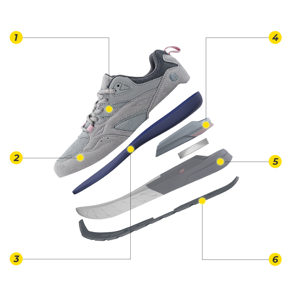 - Anti-Pronations-Sperre: Feste Konterfläche, Fersenring und breite Plattform sorgen für Gangkorrektur und unerschütterlichen Halt.