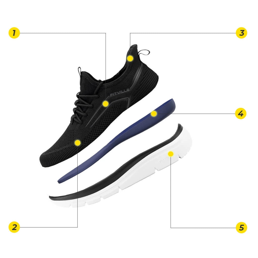 Mit extra breiten Weiten, robuster Fußgewölbeunterstützung und fortschrittlicher Polsterung sind die Cloud Wanderers von FitVille darauf ausgelegt, eine Reihe von Fußbeschwerden zu lindern, darunter: