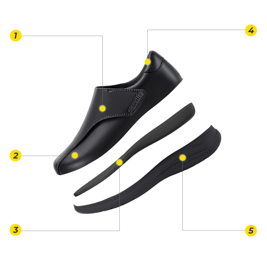 Deshalb gehen FitVille's Orthopädische Geschäftsschuhe einen Schritt weiter! Neben unserer überlegenen 58° Fortschrittlichen EVA-Sohlentechnologie haben wir auch ein sorgfältig konzipiertes, mildes Mittelfußunterstützungsdesign integriert. Dieses Design wurde von Fußarztexperten sorgfältig entwickelt, um eine sanfte Unterstützung und Erleichterung für Ihre Füße zu bieten.
