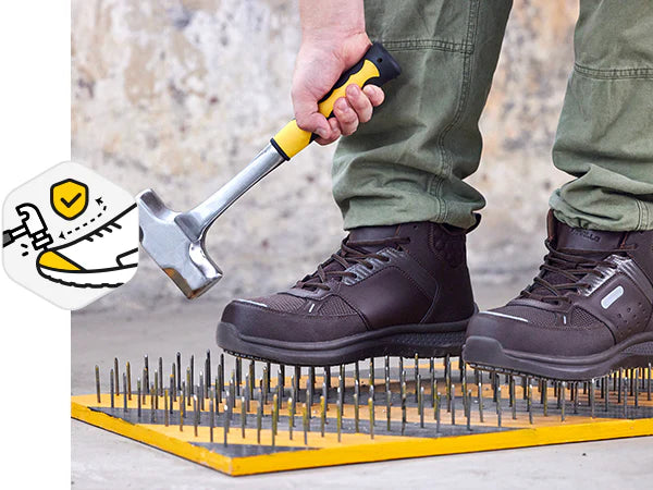 - Solid Shield: Der Zehenschutz aus Verbundwerkstoff hält Sie in jeder Umgebung furchtlos.