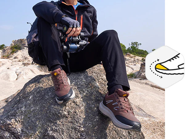 Entfliehen Sie der Natur und erreichen Sie neue Höhen mit dem robusten Kern von FitVille. Ein klassischer Wanderschuh, der mit einer aufregenden Low-Top-Silhouette aufgewertet wurde. Atmungsaktives und wasserdichtes Obermaterial mit rutschfester Stollen-Außensohle, die fest gebaut ist, um unerwarteten Regenfällen und rutschigen Oberflächen standzuhalten. Die breite und extra breite Zehenbox bietet ausreichend Platz, um geschwollene Füße nach langen Spaziergängen unterzubringen. Außerdem bietet die EVA-Zwischensohle mit Stoßdämpfung den Halt, den Sie für das endlose Abenteuer benötigen.