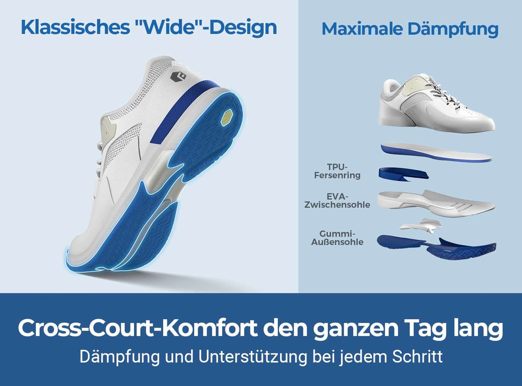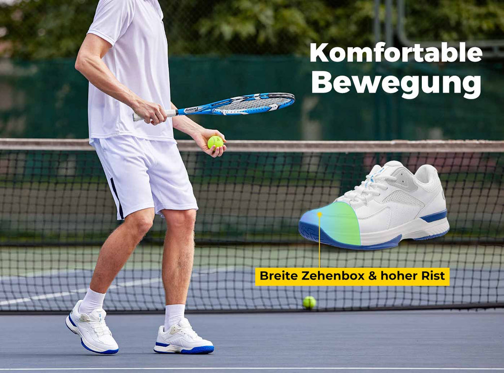 Mit dem ikonischen breiter Zehenbox von Fitville, Amadeus Tennisschuhe bietet Ihnen ein geräumiges Erlebnis und sorgt für ein angenehmes Fußgefühl.
