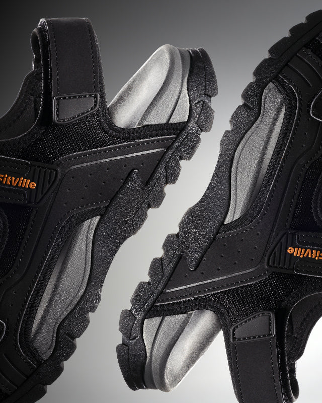 Anatomisch konstruierte Fußbett fördert eine korrekte Ausrichtung, verteilt den Druck gleichmäßig und hilft, Fuß- und Kniebelastung für dauerhaften Komfort zu minimieren.