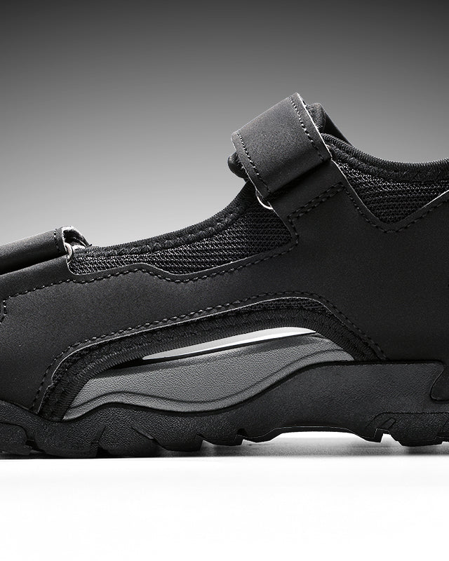 Drei verstellbare Haken-und-Schlaufe-Riemen am Vorderfuß, Mittelfuß und Absatz sorgen für einfaches An- und Ausziehen sowie eine sichere, personalisierte Passform für jede Fußform.